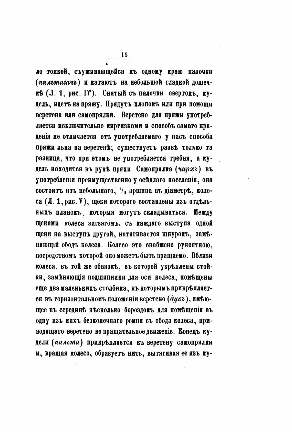 и, вращая колесо, образуетъ нить, вытягивая ее изъ ву-