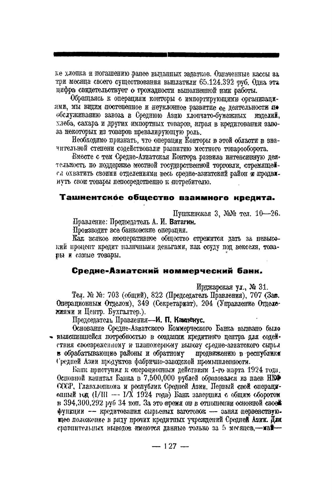 Ташнентснбе общество взаимного кредита.