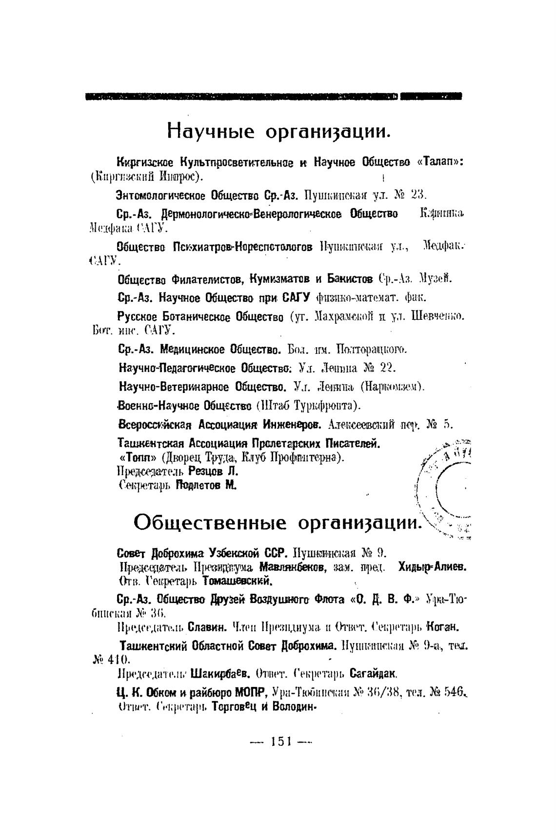 Ср.-Аз. Научное Общство при САГУ физико-математ. фак.