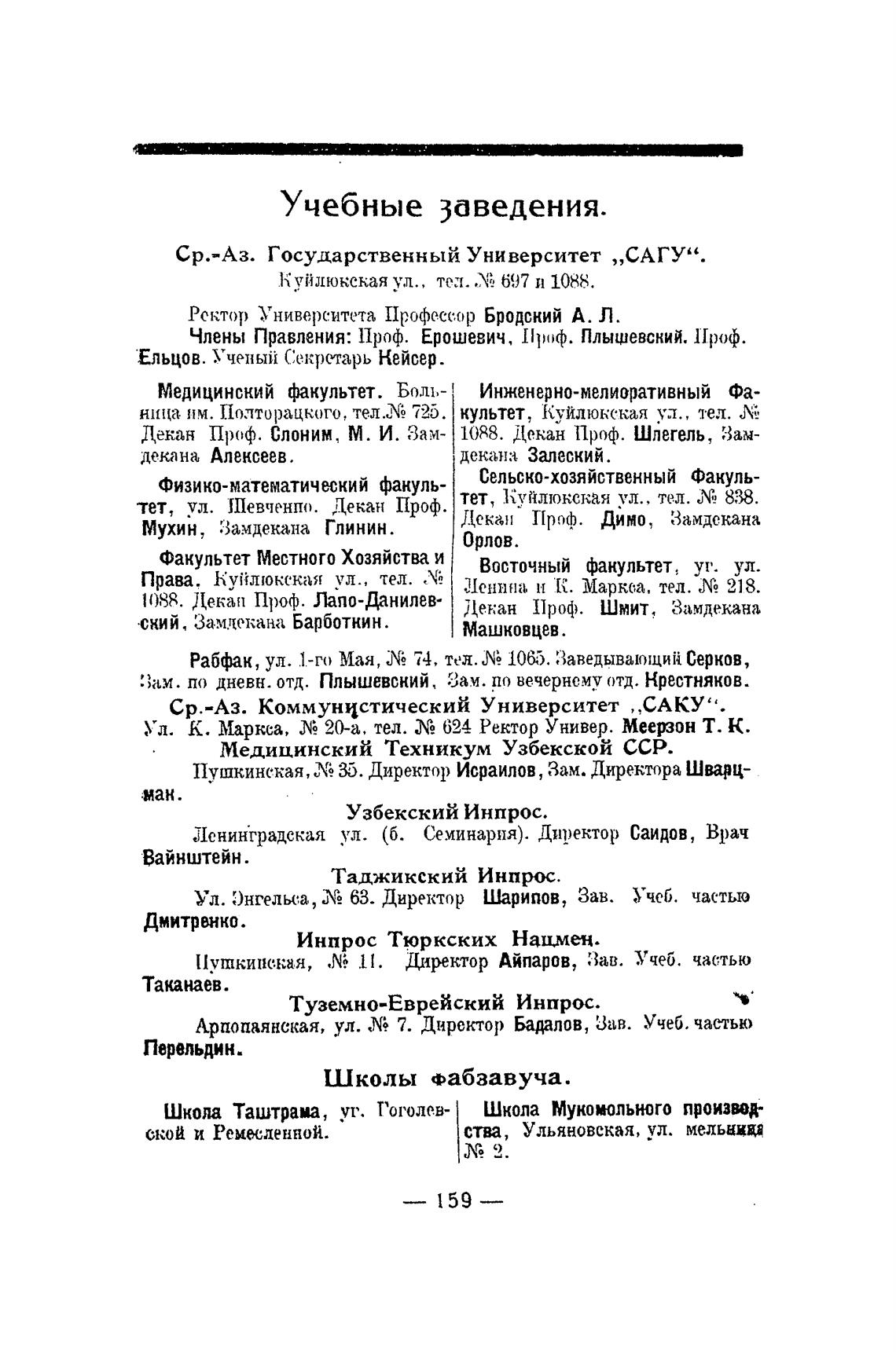 Ср.-Аз. Коммунистический Университет „САКУ”.