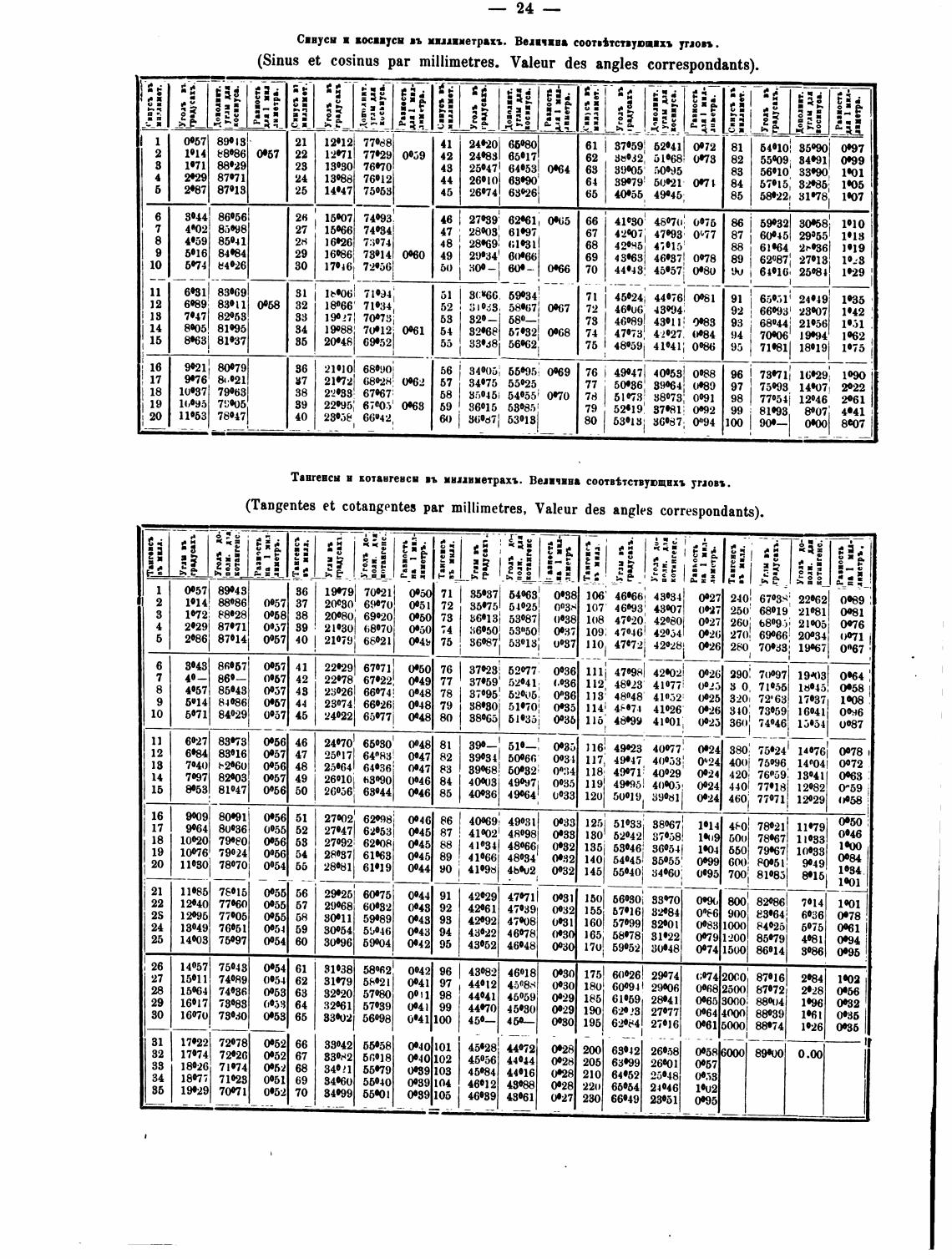 (Sinus et cosinus раг millimetreg.
