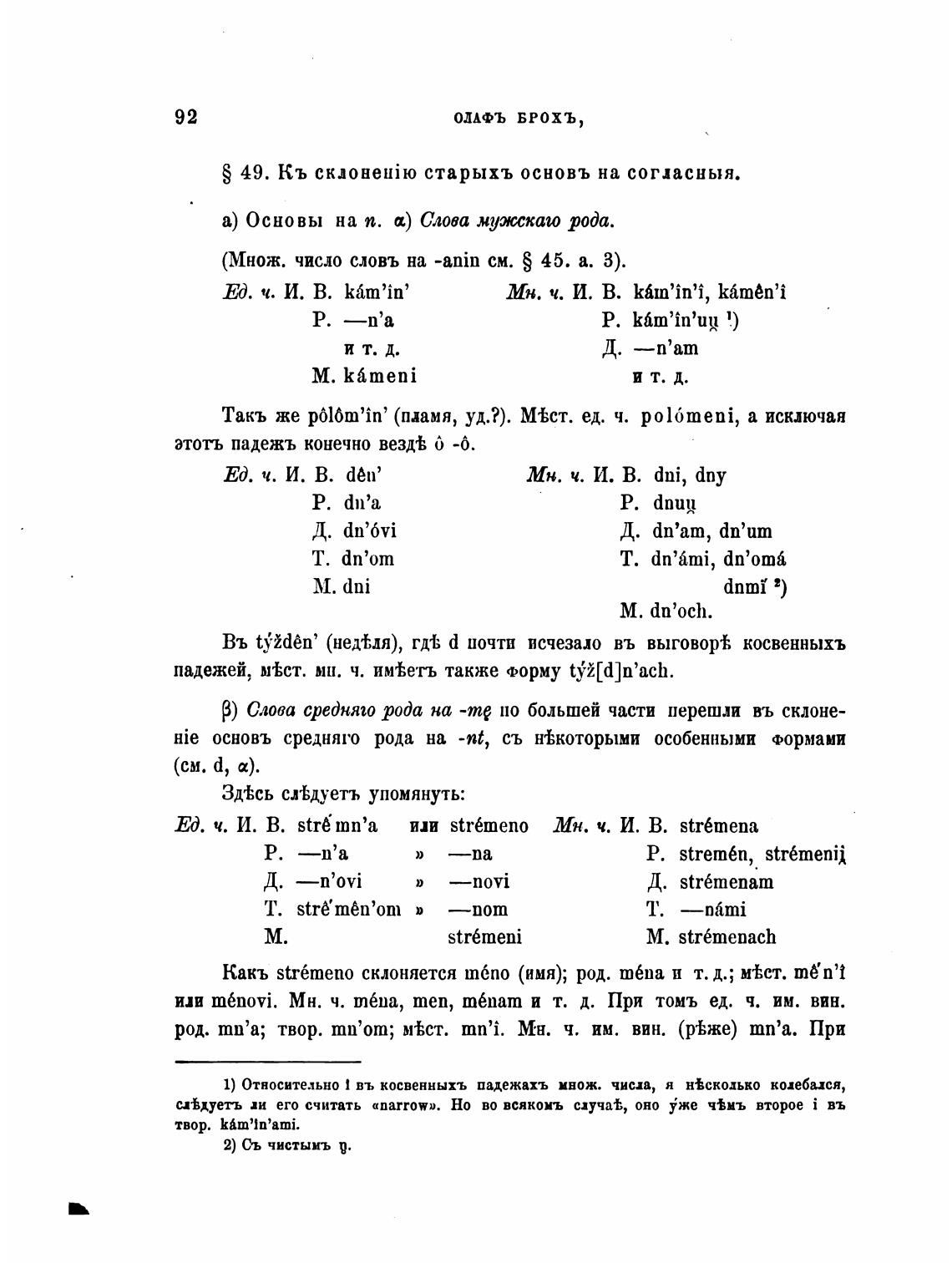 S 49. Кь старыхъ основъ на согласныя.