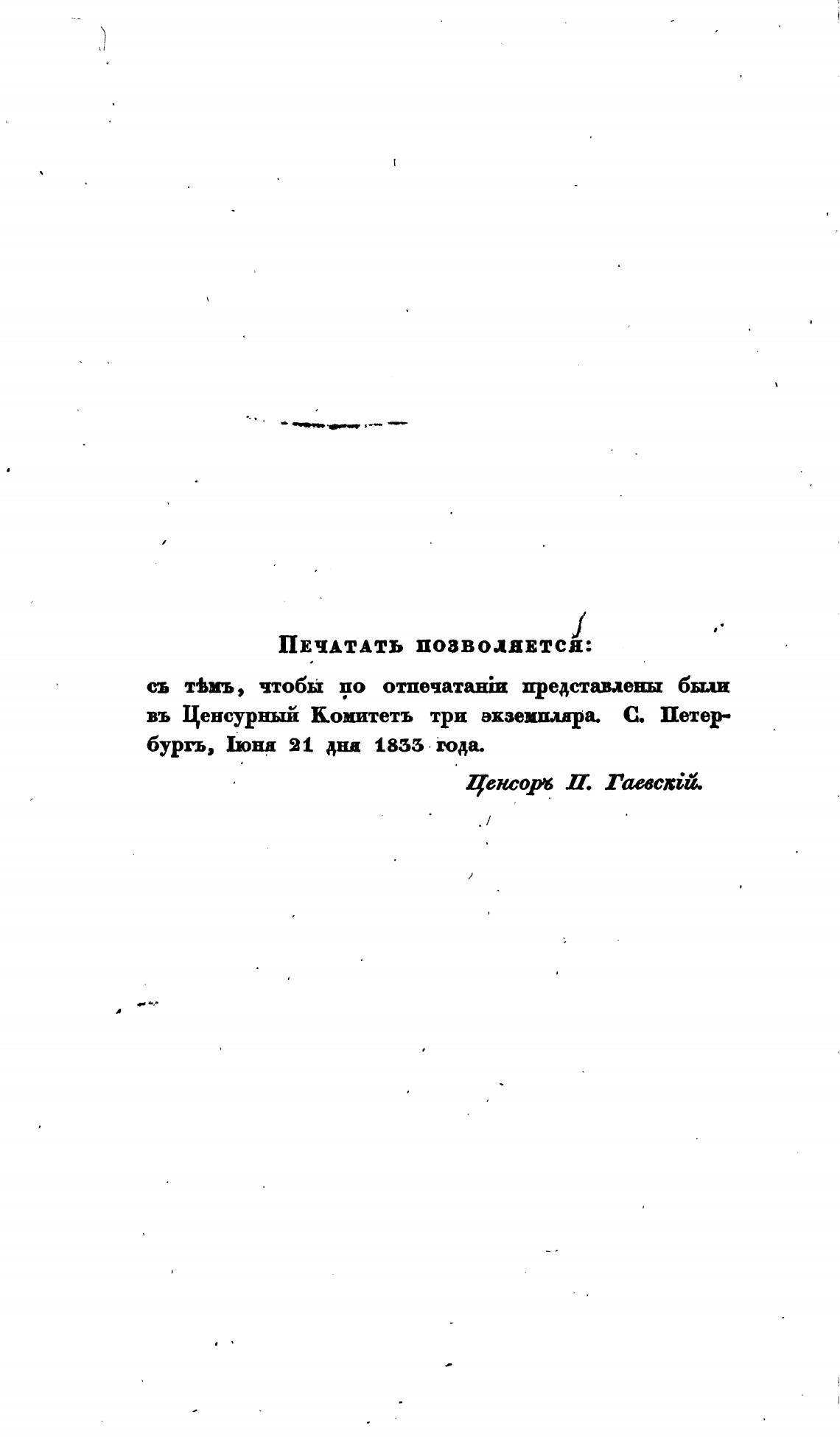 въ Ценсурный Комитетъ три экземплдра. С. Петер-
