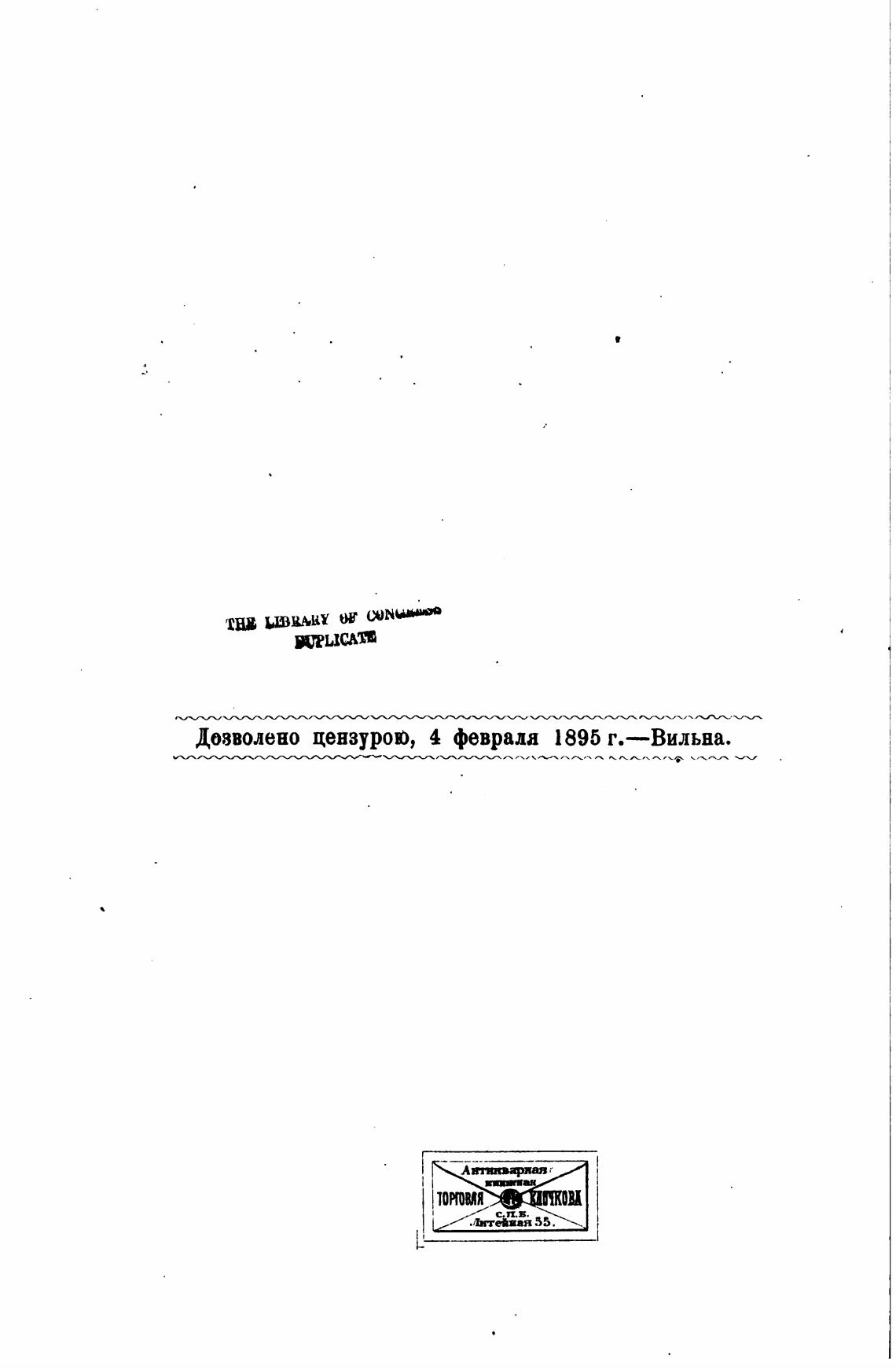 Дозволено цензурою, 4 феврала 1895 г.—Вильна.