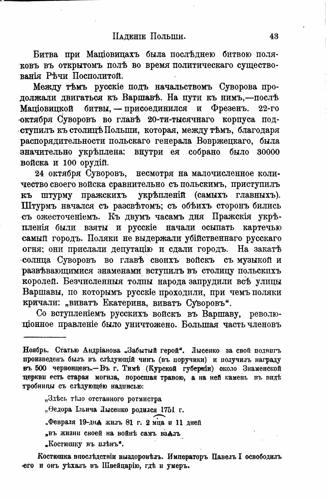 Между тьмъ pycckie подъ начальствомъ Суворова про-