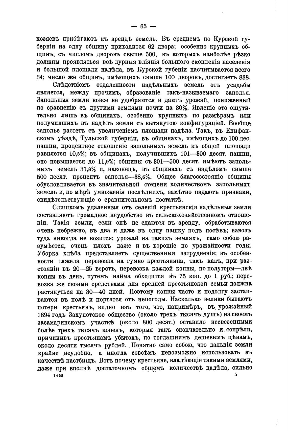 Запольныя земли вовсе не удобряются и даютъ урожай, пониженный