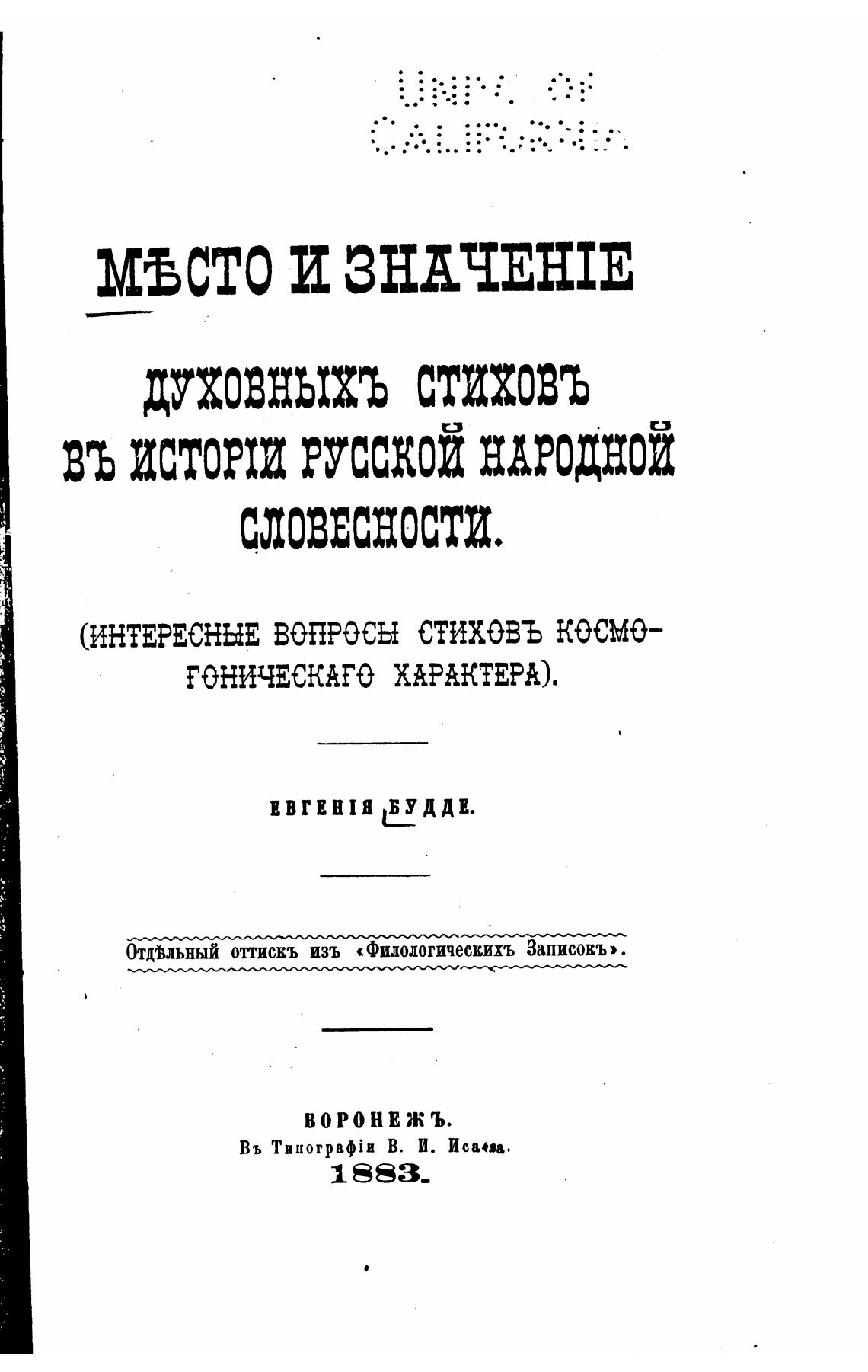 Отдвльный отгискъ изъ «Филологическихъ Записовъ».