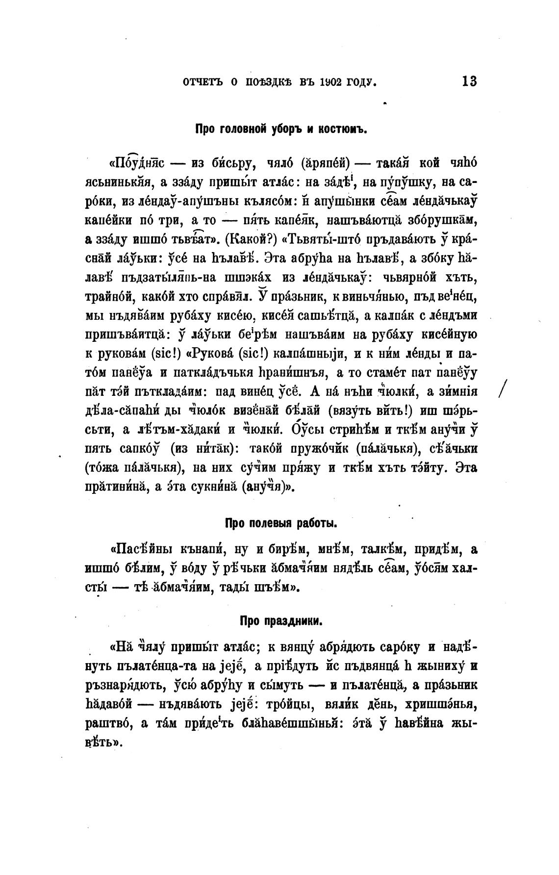 Про головной уборъ и костюиъ.