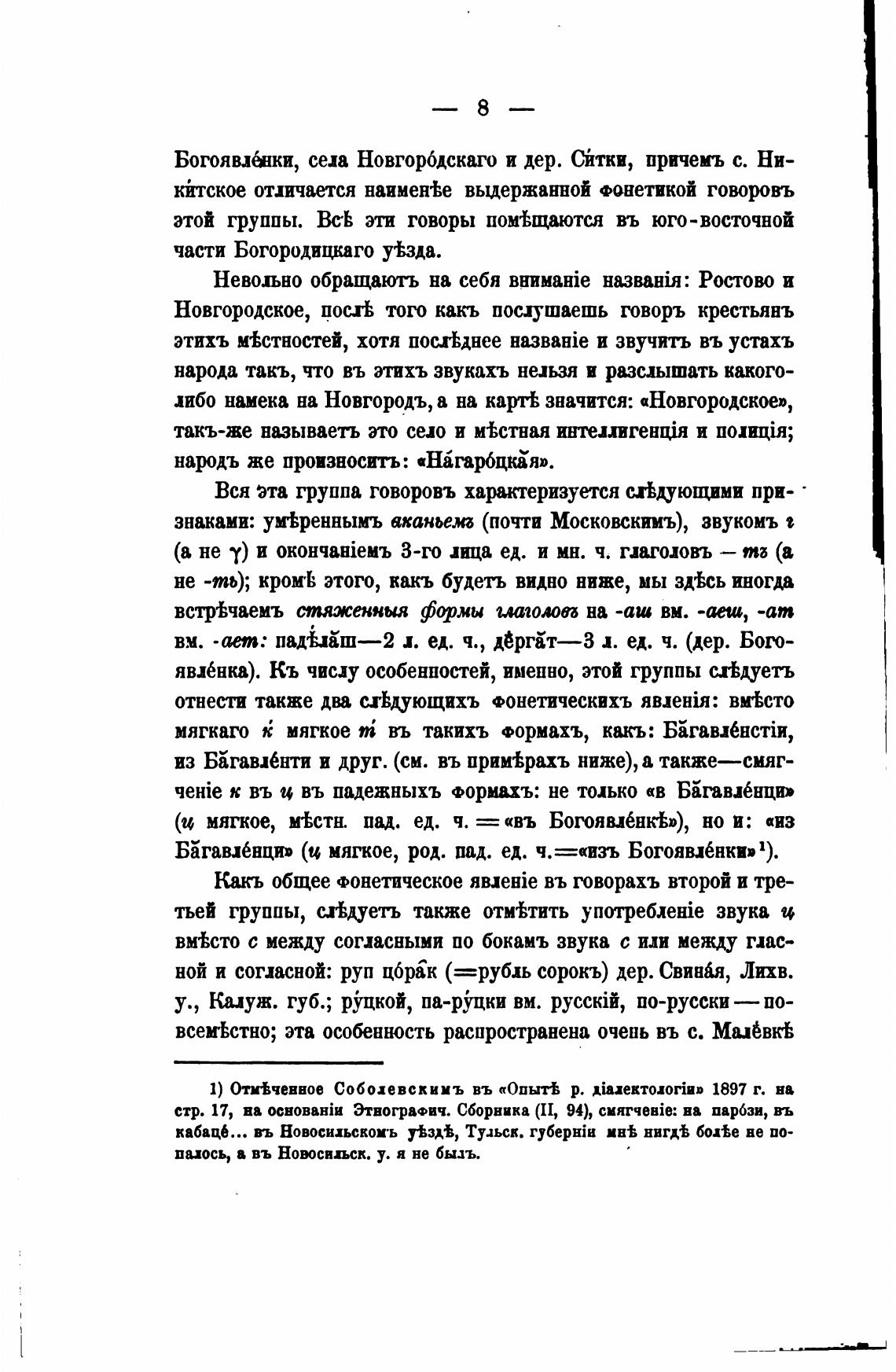 знаками: ум%реннымъ аканьем (почти Московскимъ), звукомъ е