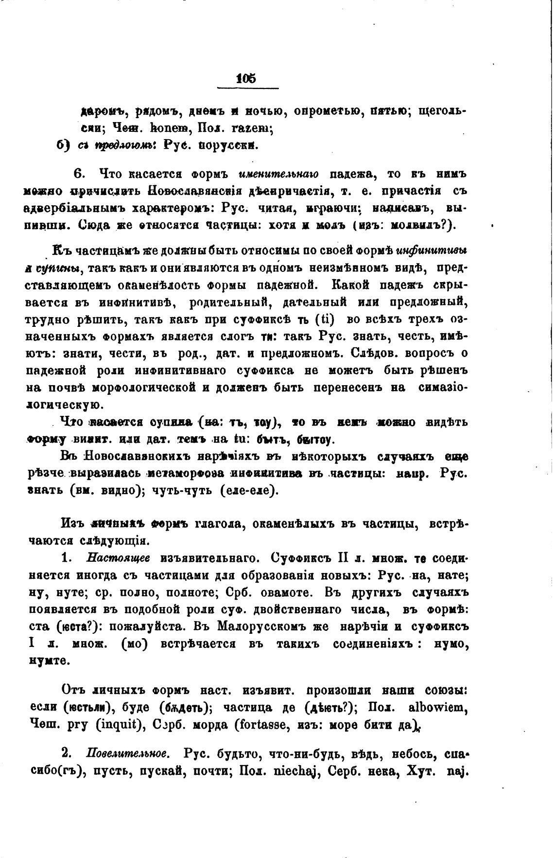 Въ частицамъ же должны быть относимы по своей ФОР“ инфинитивы