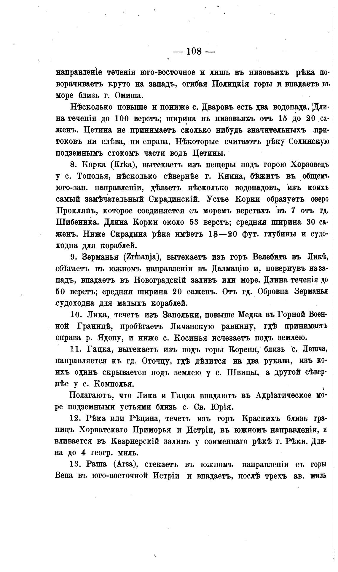 9. Зерманья (Zrinanja), вытекаетъ изъ горь Велебита въ ЛИЕТ,