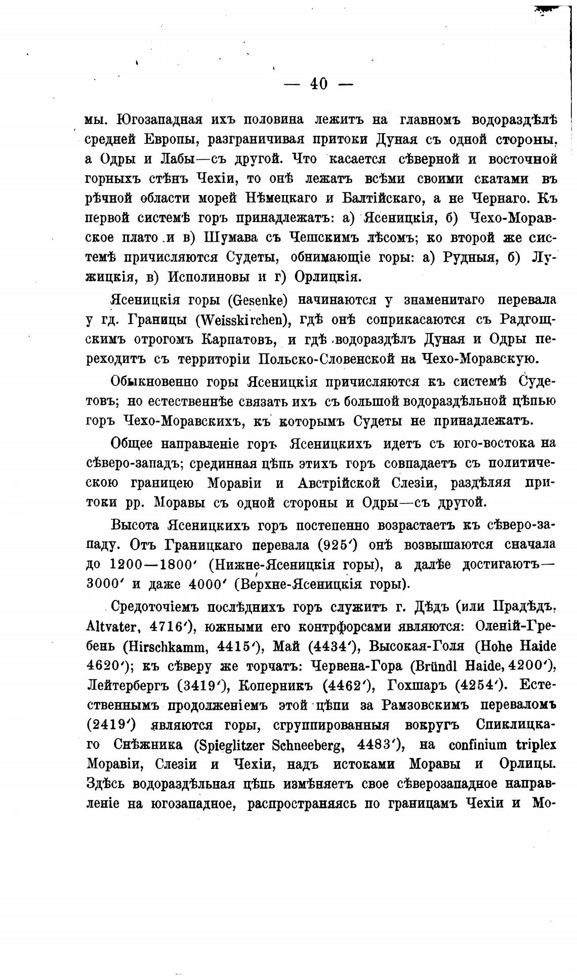 горь Чехо-Моравскихъ, кь которымъ Судеты не принадлежать.