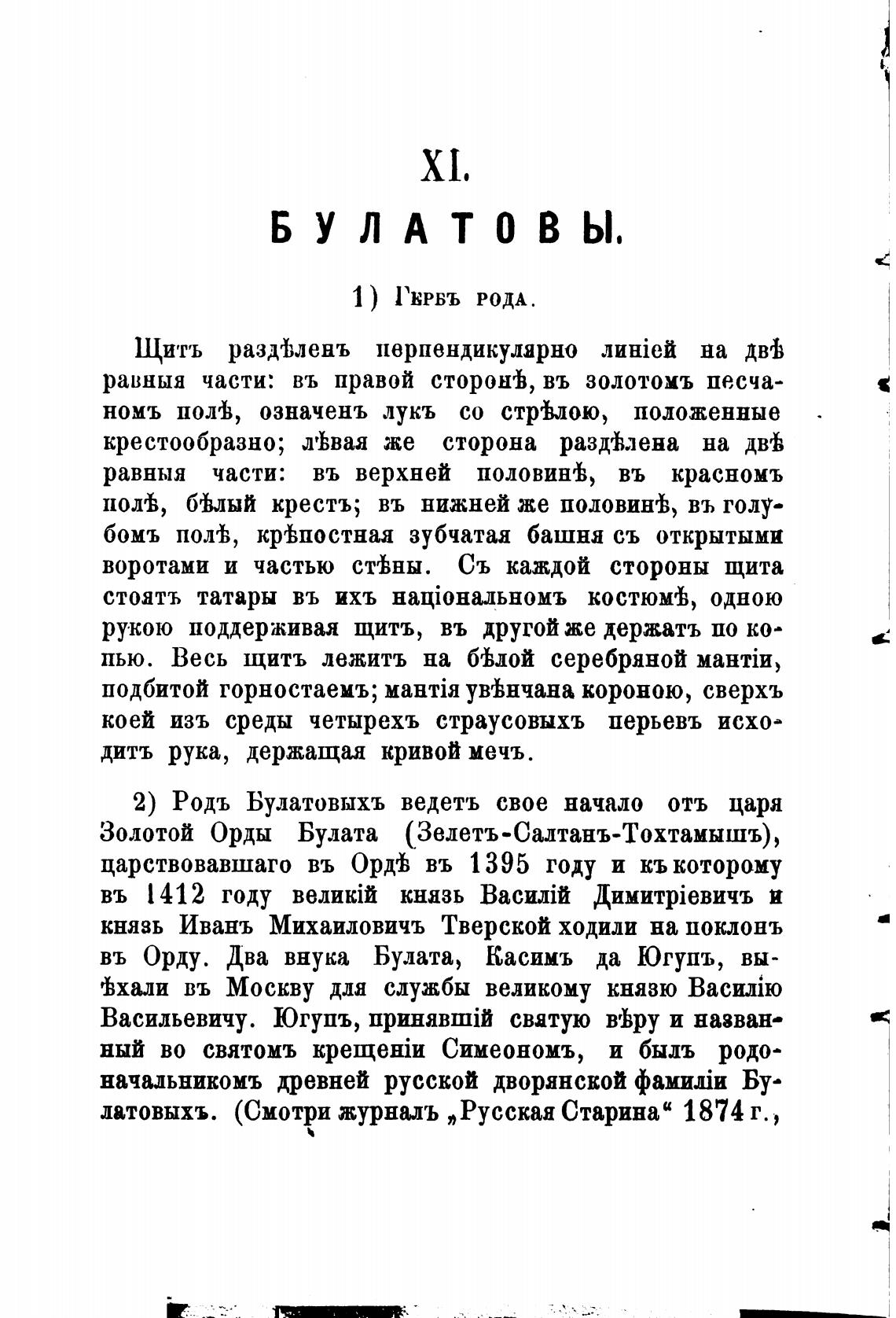 2) Родь Булатовыхъ ведетъ свое начало отъ царя