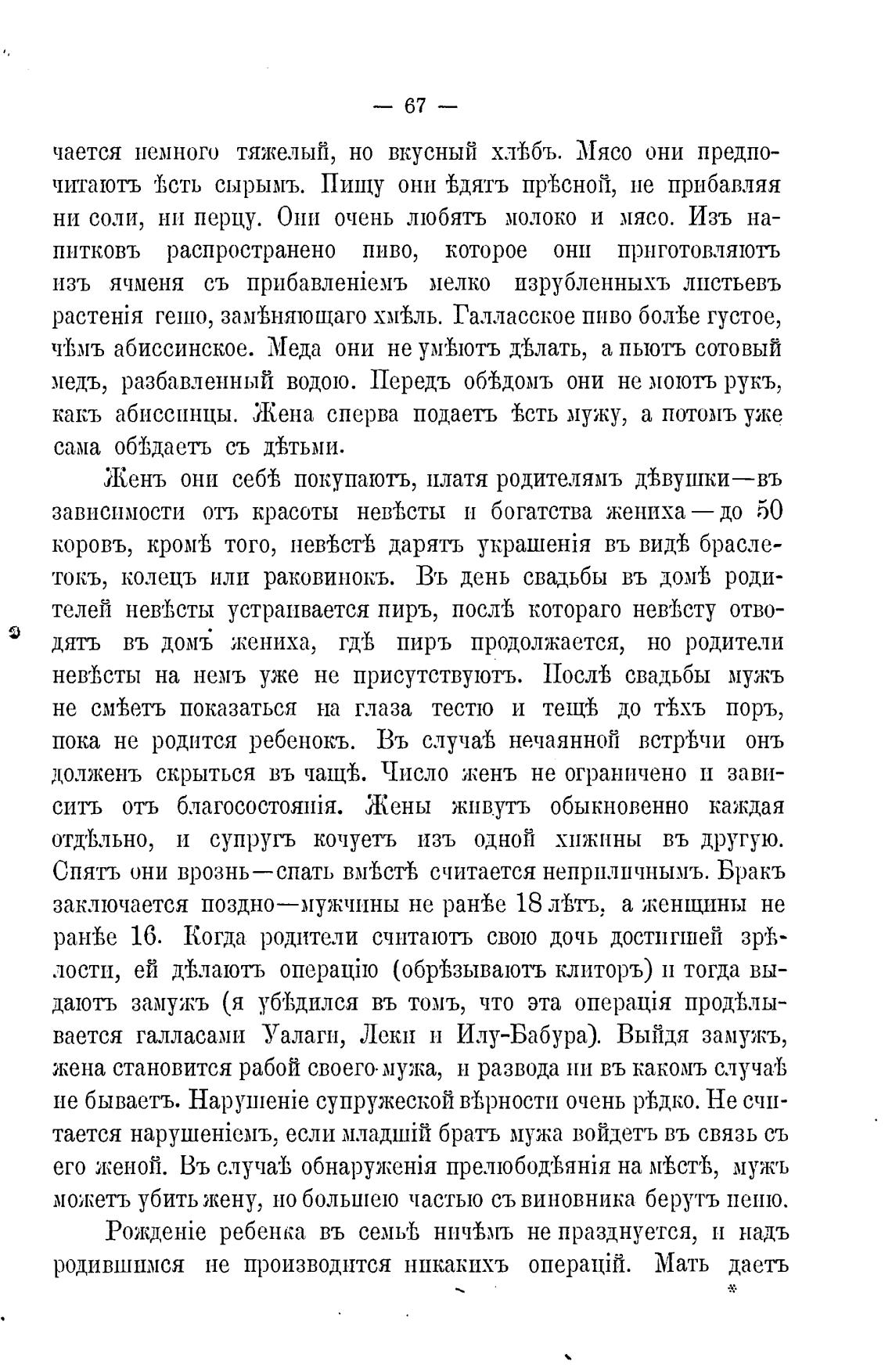 какъ абиссинцы. Жена сперва подаеть гвсть мужу, а потомъ уже