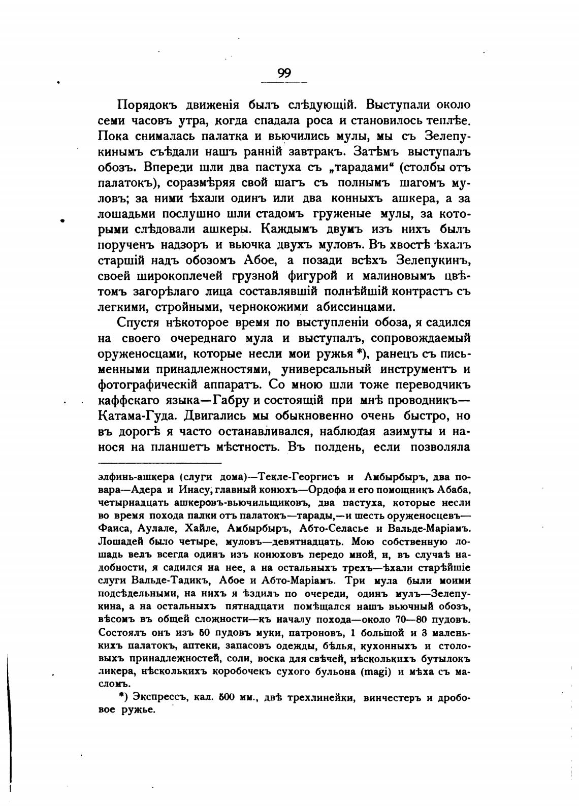 Лошадей было четыре, муловъ—девятнадцать. Мою собственную ло-