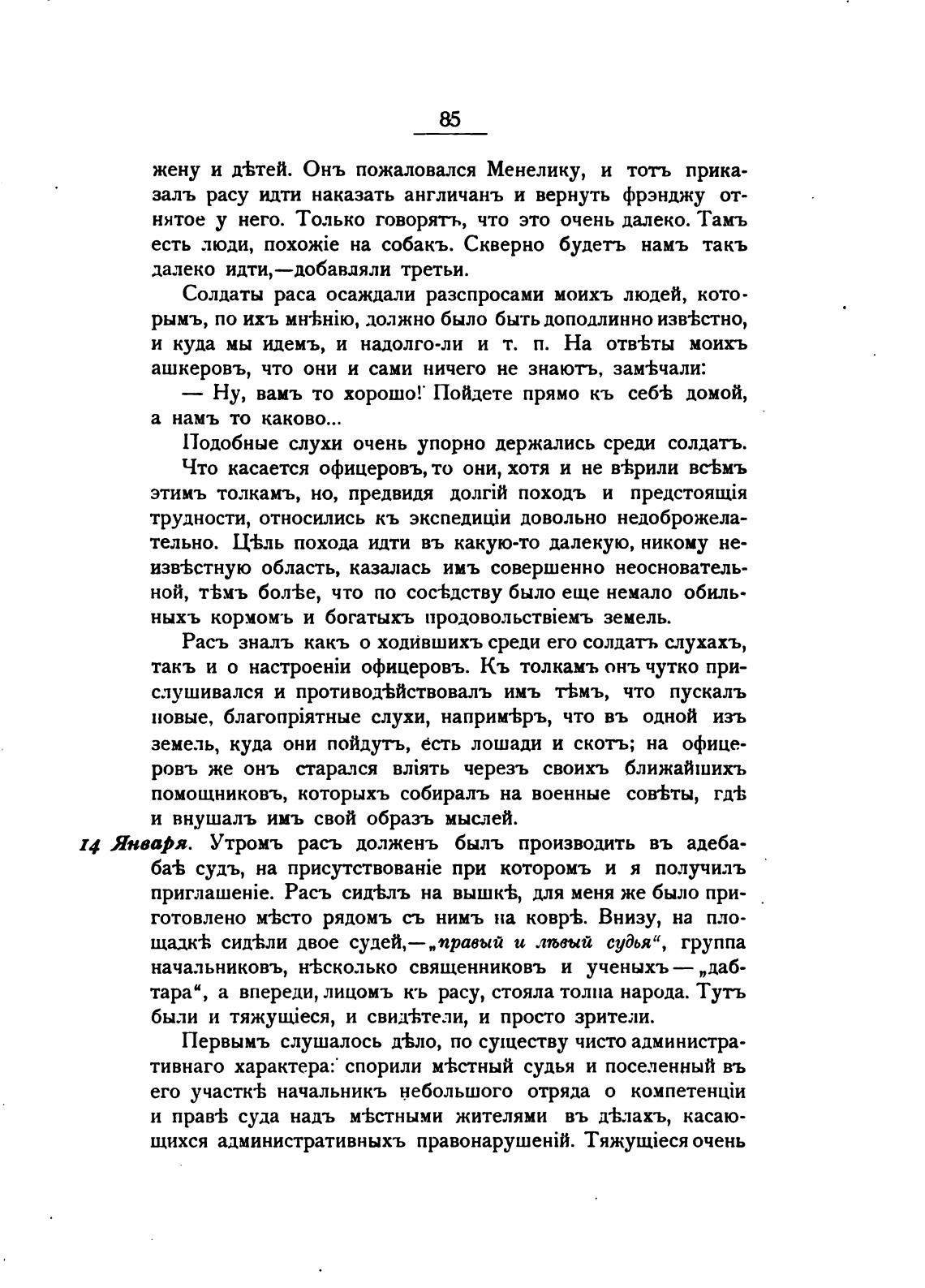 14 Января. Утромъ расъ долженъ быль производить въ адеба-