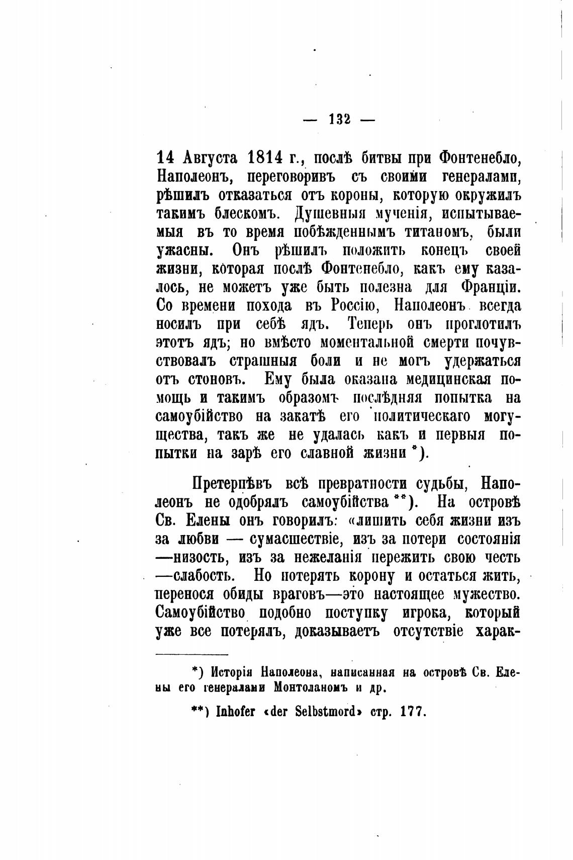 Св. Елены онъ говорилъ: «лишить себя жизни изъ