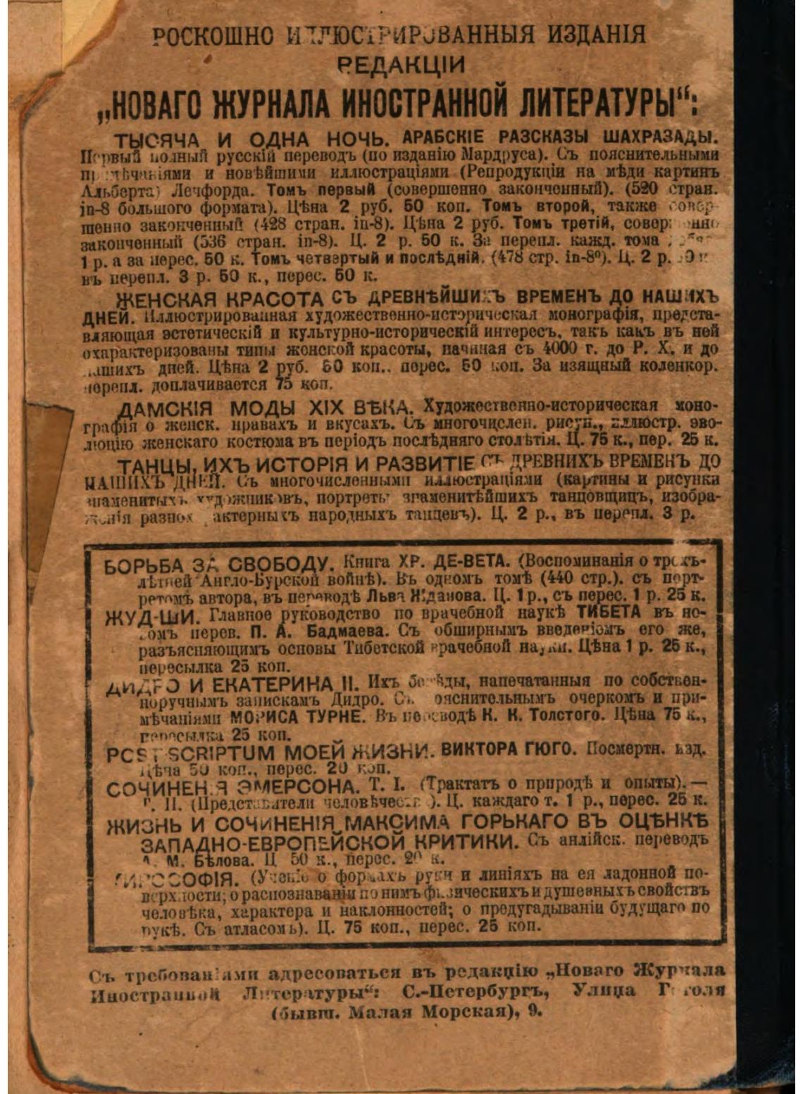 Иностраиьоа Лутердтуры“: С.—Петербургъ, Улиџа Г: гол я