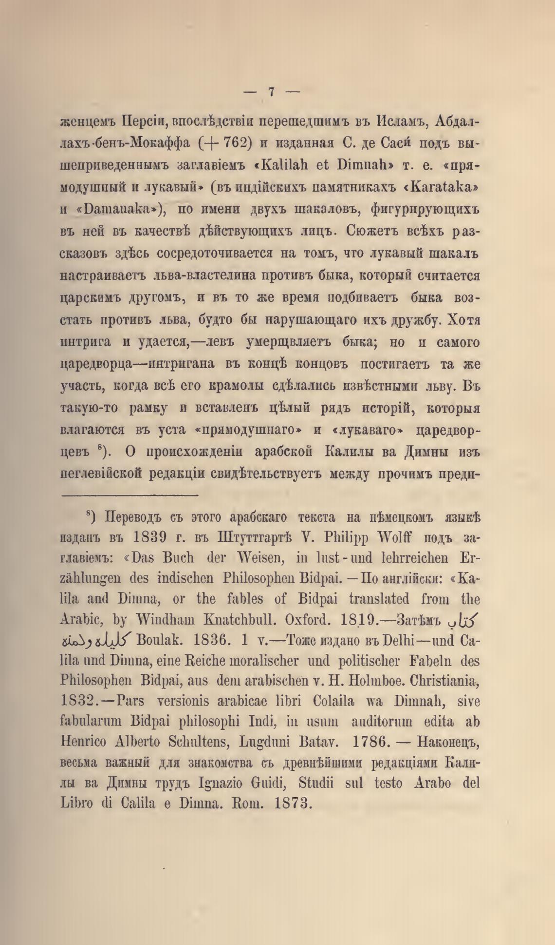 цевь 8). О арабской Калилы ва Димны изъ