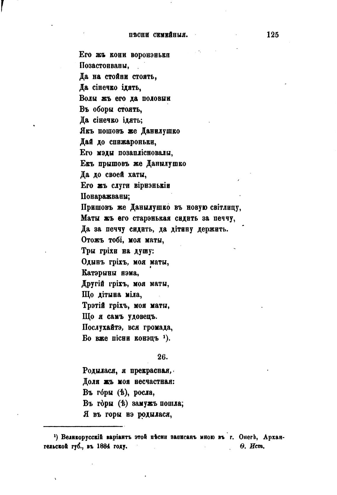 1) ВелвворусскТ BapiaHTb этой п±сни вааисаяъ мною въ г. ОнегЬ, Архан-