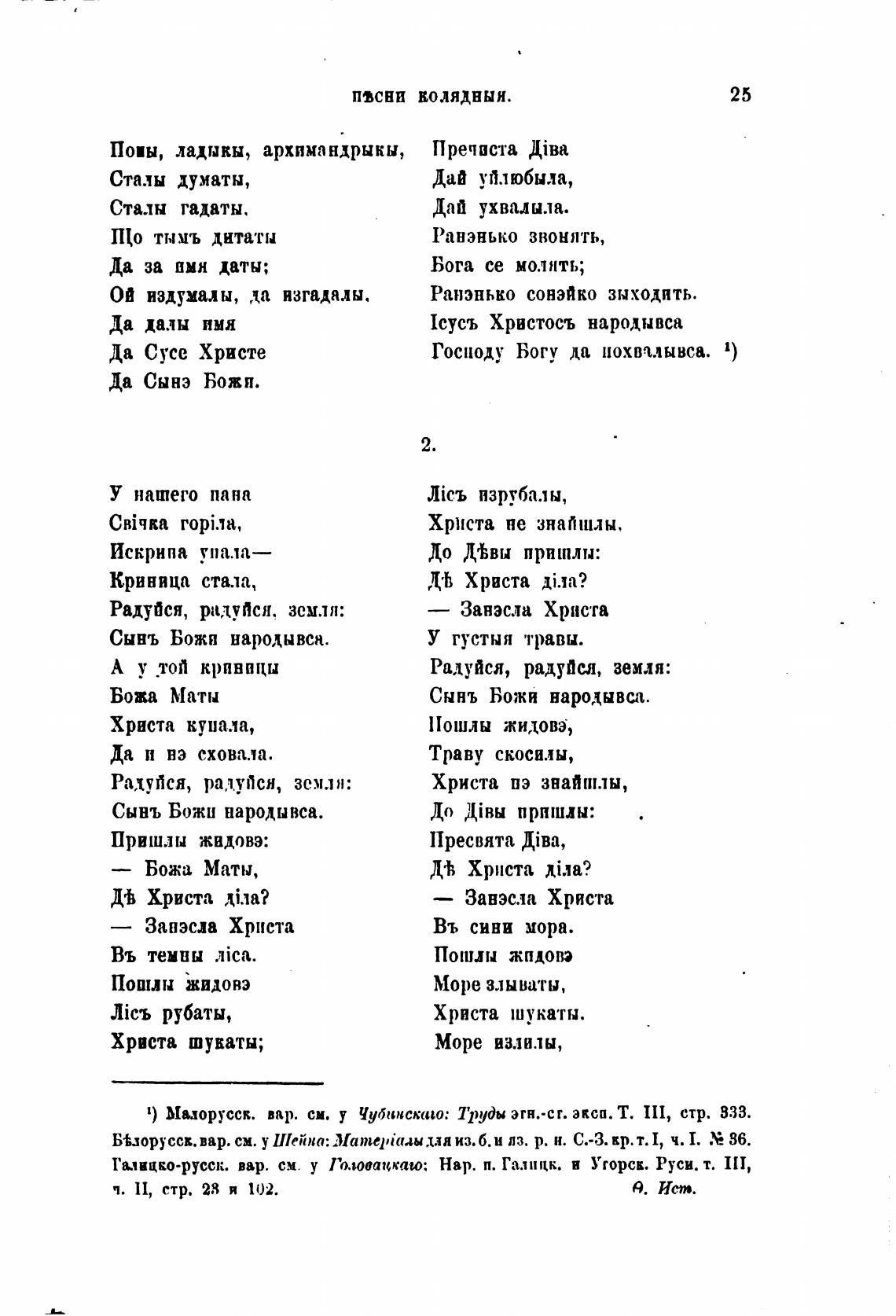 1) Мыорусск. вар. см. у Чубинскшо: Труды этн.•сг. экса. Т. 111, стр. 833.