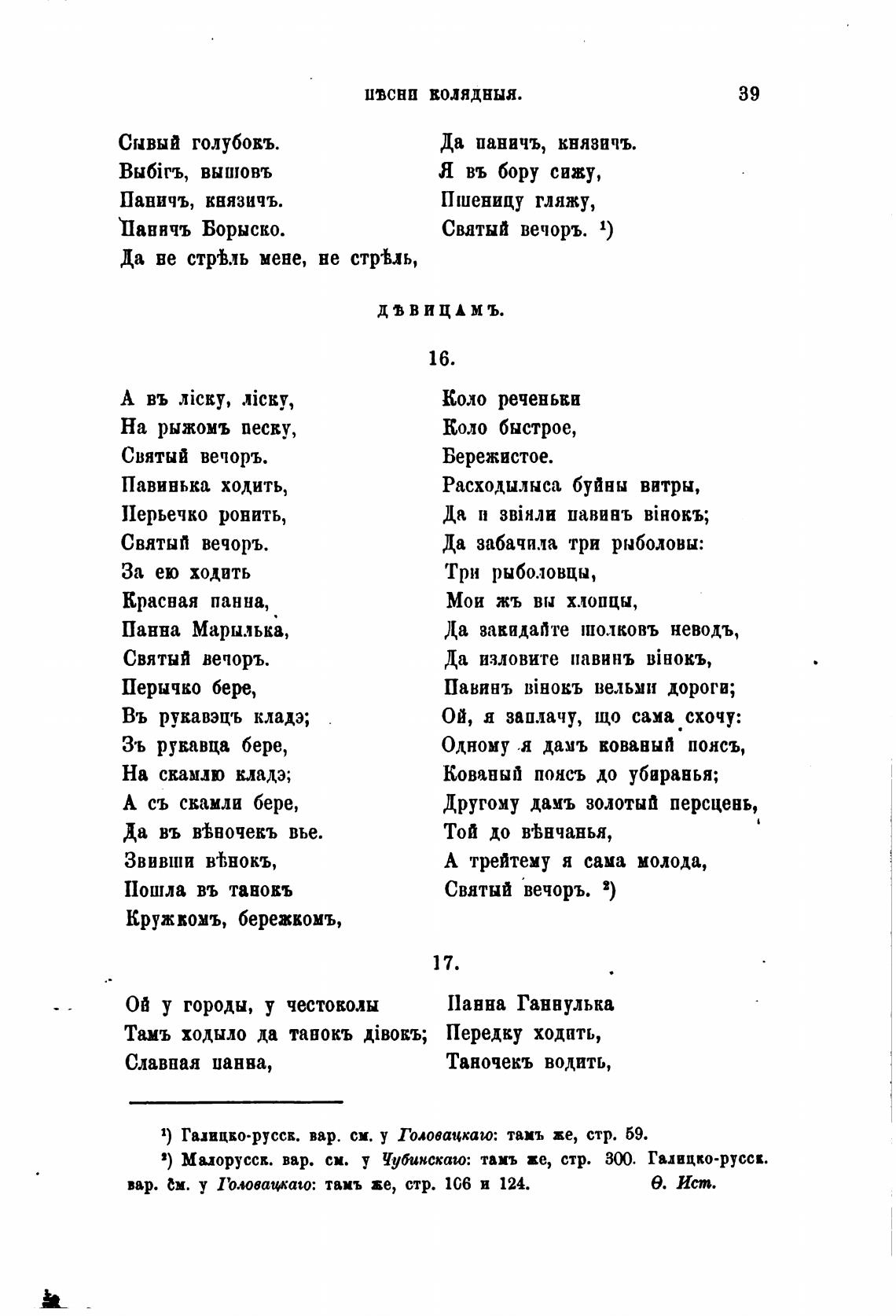 2) Миорусск. вар. см. у Иубимскаш: тамъ ве, стр. Галицко-русск.