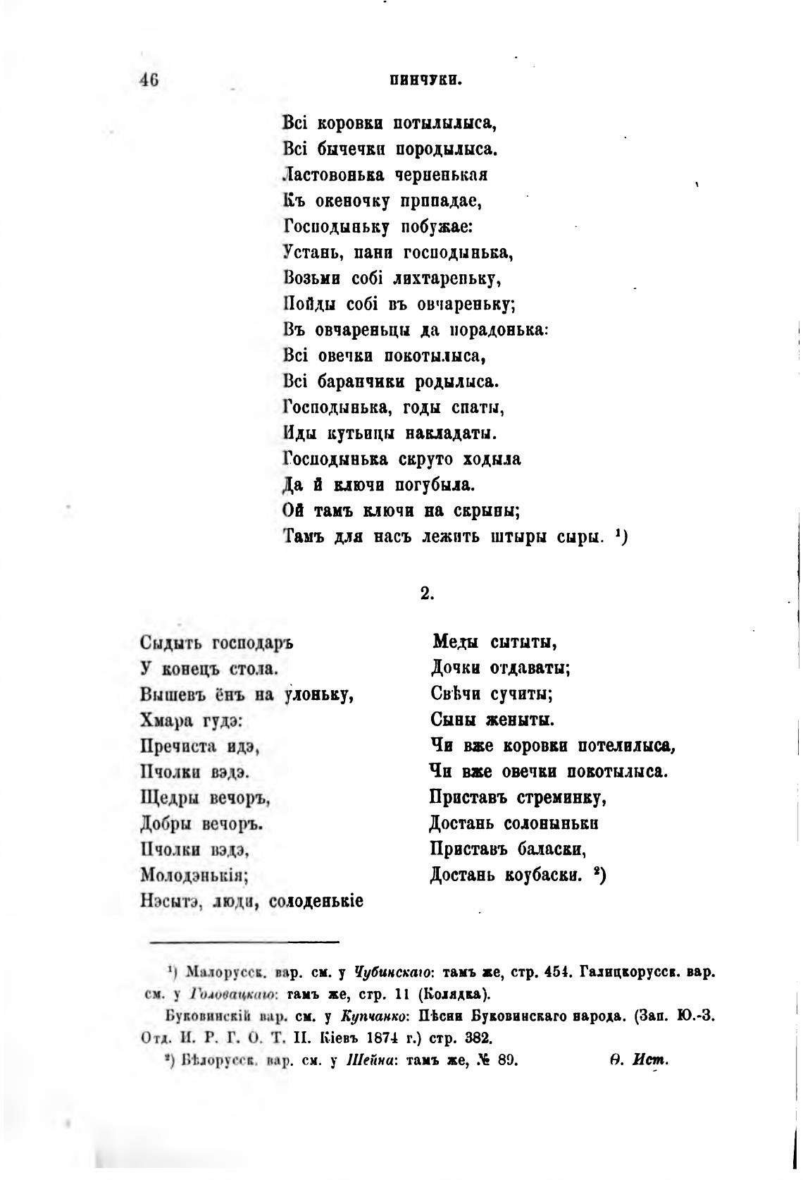 Мшдоруссв. вар. см. у Иубинскто: тамъ же, стр. 454. Гиицворуссв. вар.