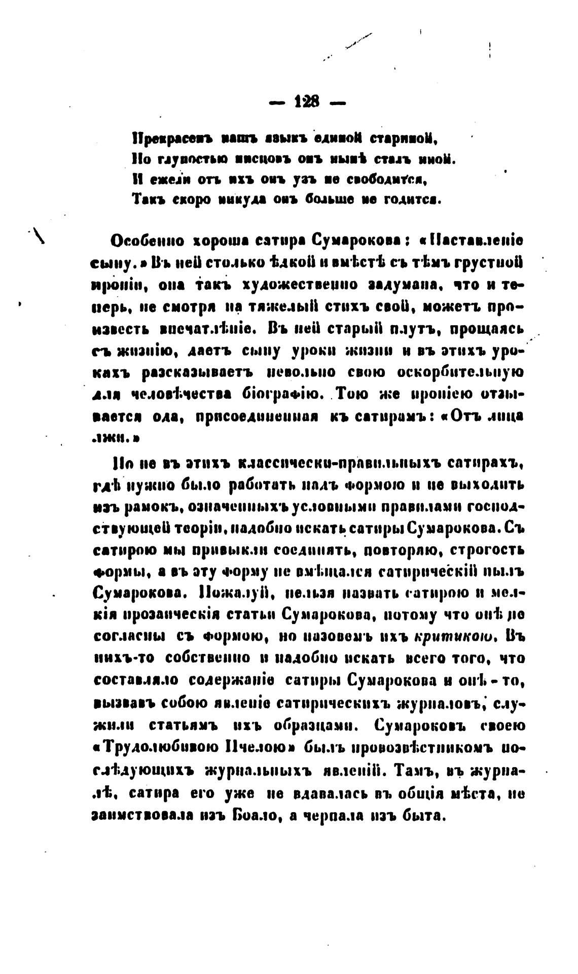 Особенно хороша сатира Сумарокова ; а Наставлев“о