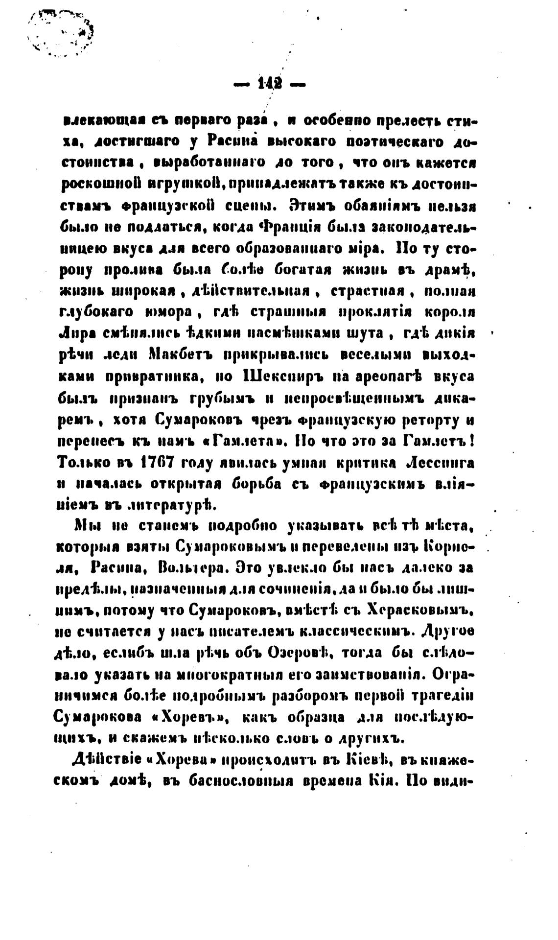 Только п 1767 году явилась умная критика Лессинга