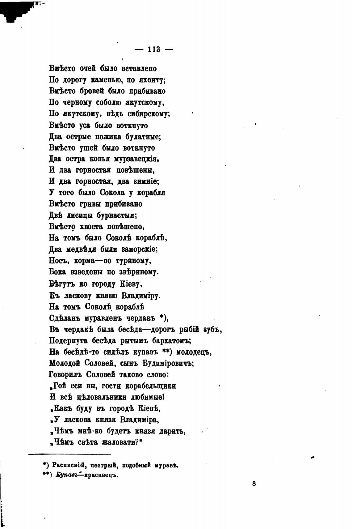 На бесВВ-то сидВлъ купавъ **) молодецъ,