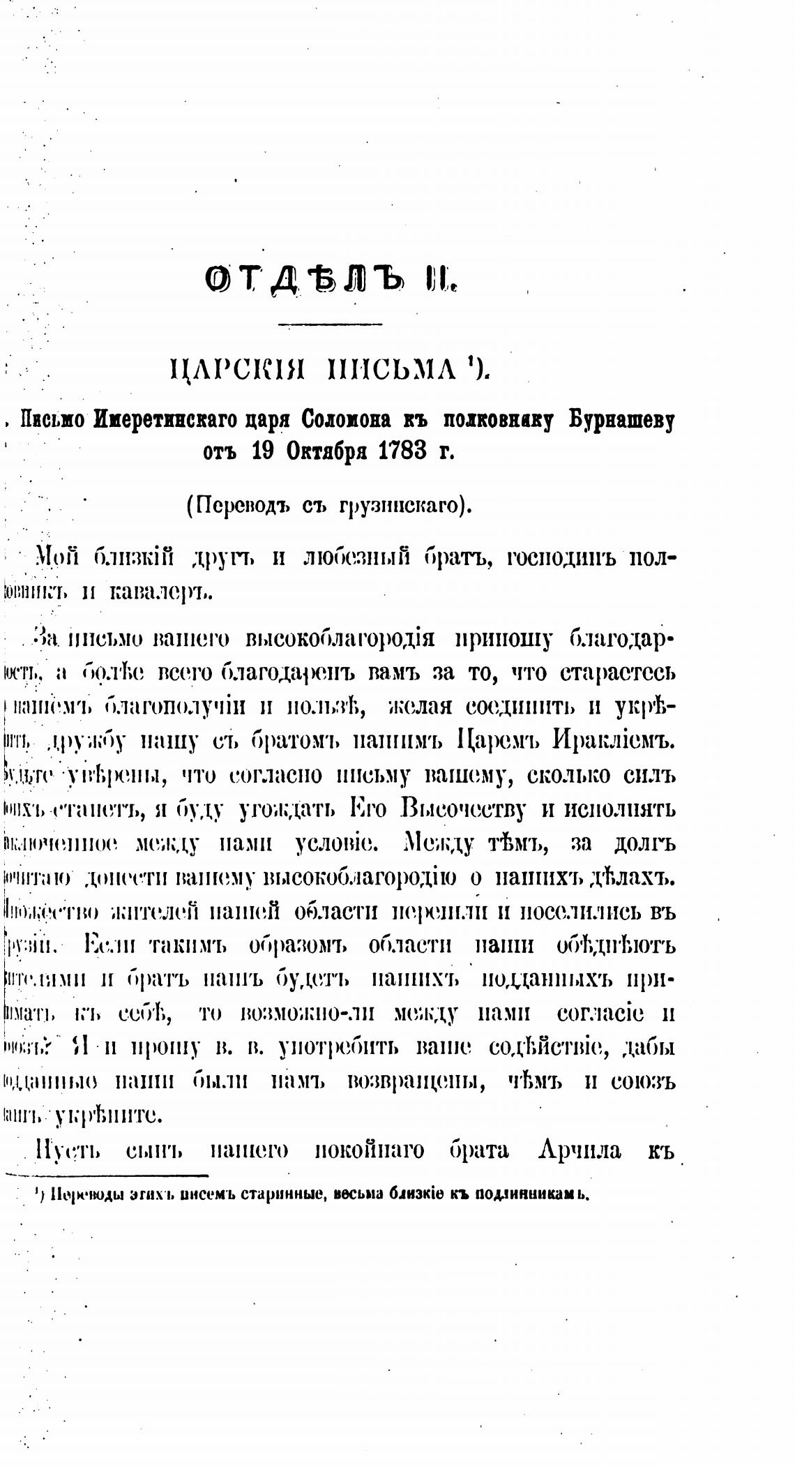 Письмо Имеретинскаго царя Содоиона въ поповнику Бурнашеву