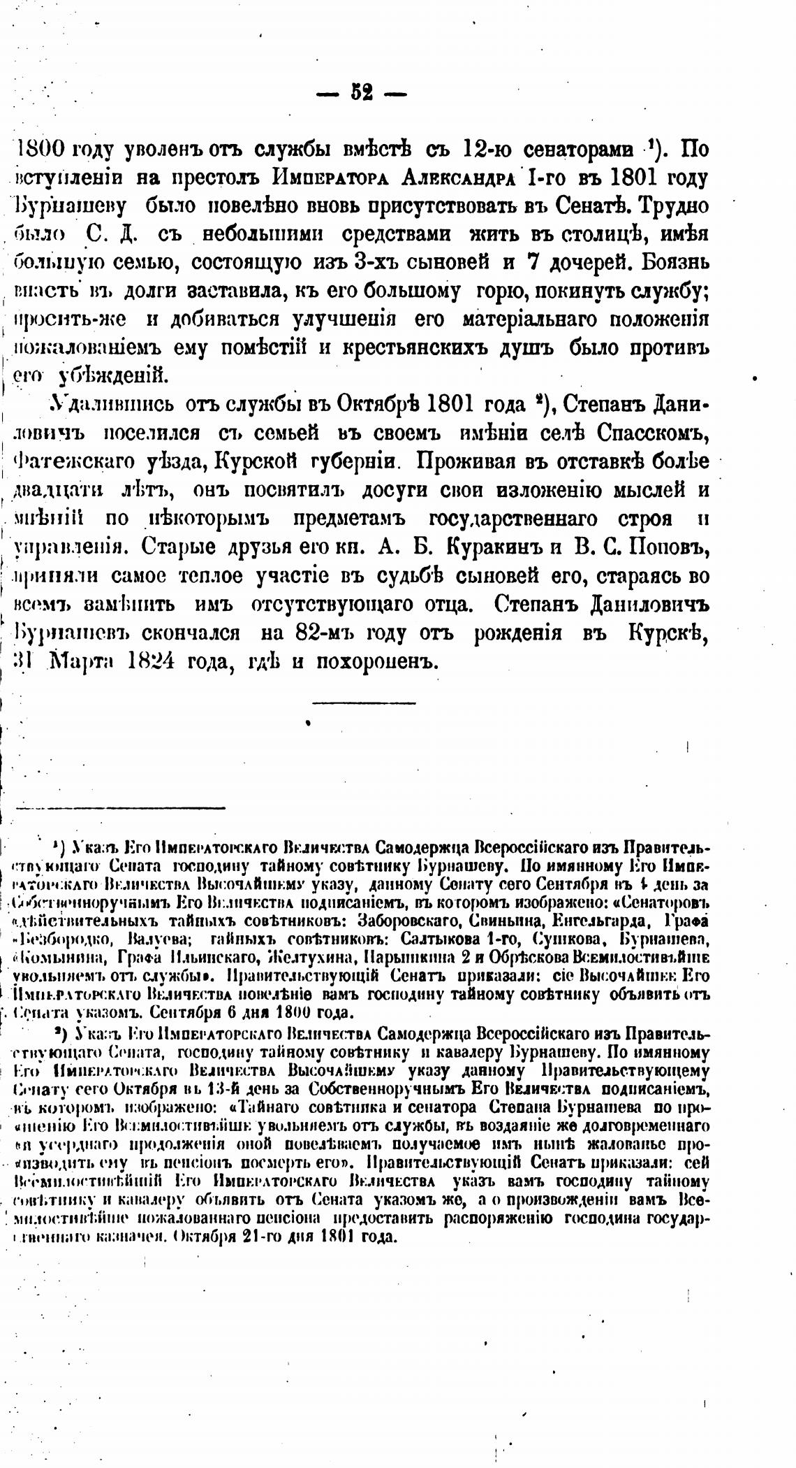 1800 году уволенъ отъ службы вм%стЬ съ 12-ю севаторамв 1). по