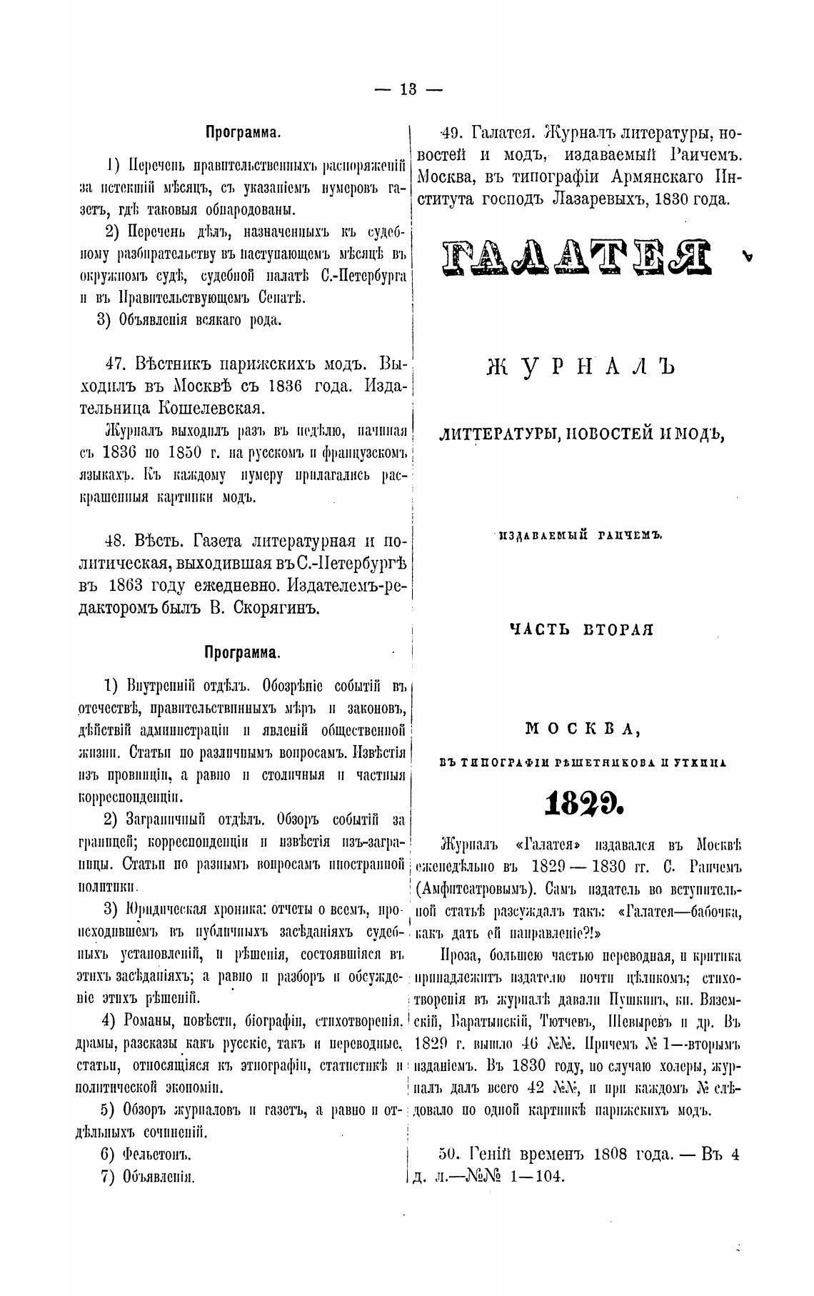 49. Галатея. Журна.лъ литературы, но-