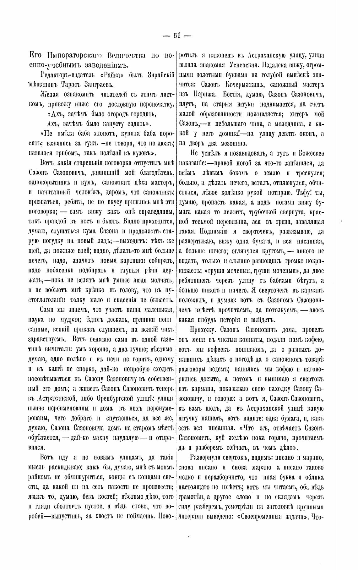 Желая ознакомить читателей съ лист- изъ думаю, Сазопъ Сазоновпчъ,