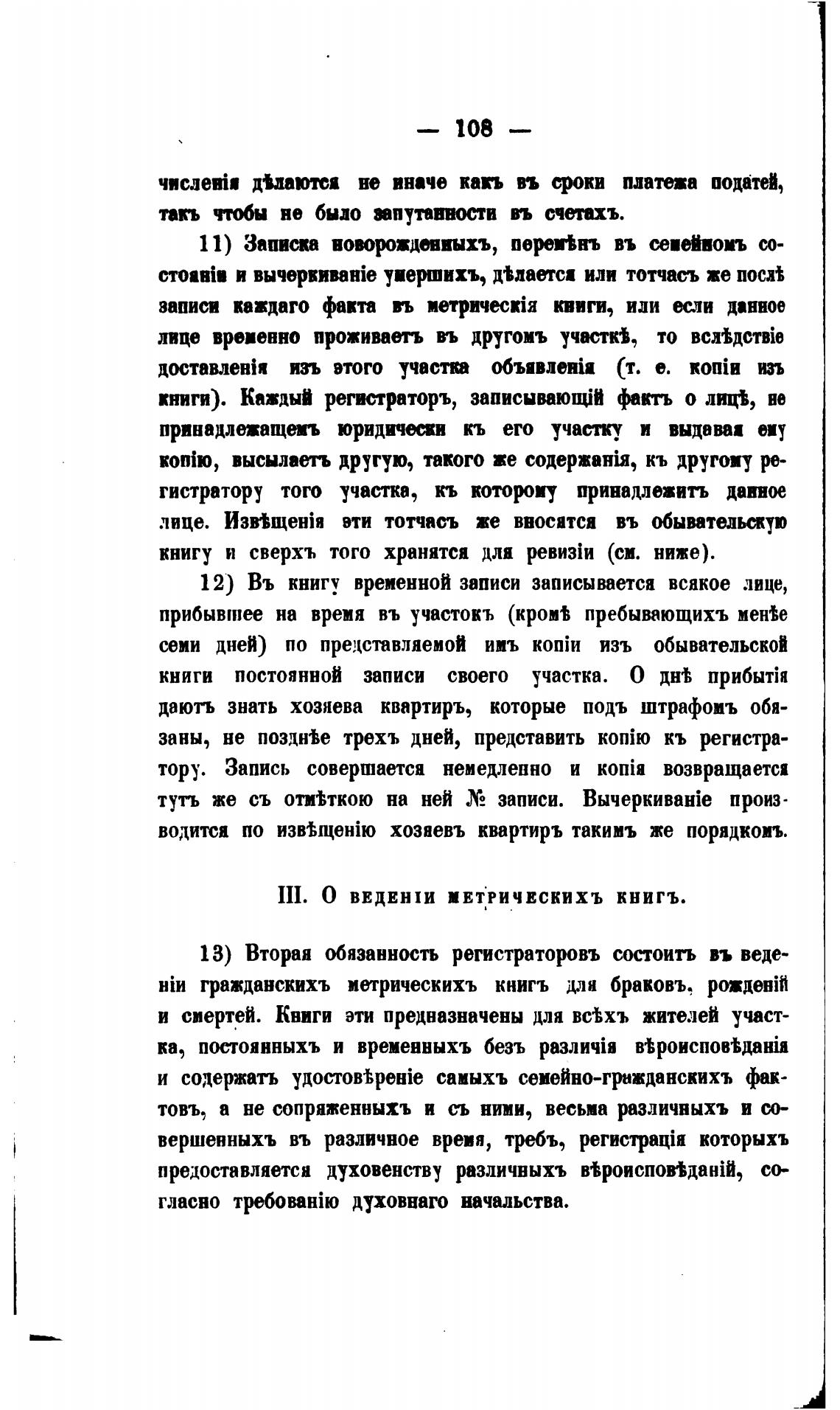 III. О ВЕДЕНШ МЕТРИЧЕСКИХЪ КНИГЪ.