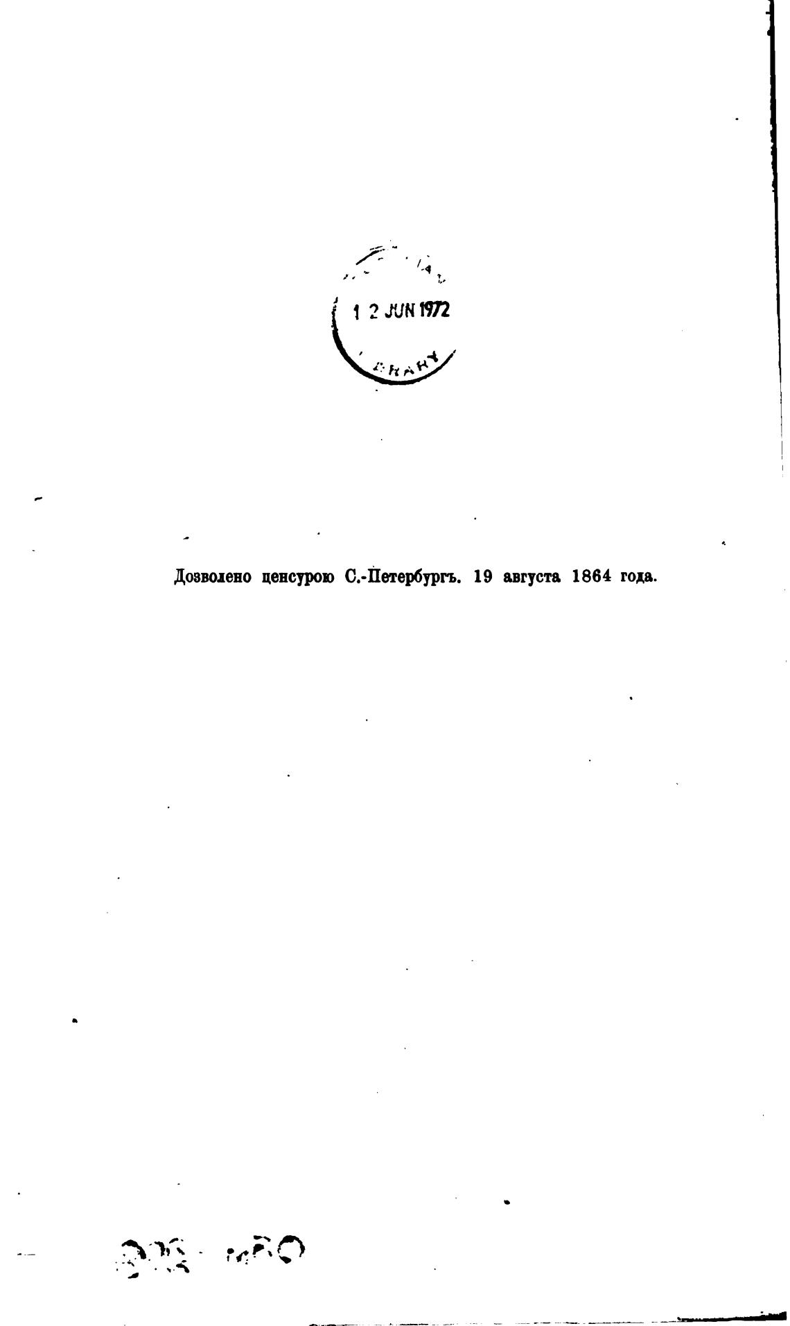 Дозволено ценсурю С.-Пете"ургъ. 19 августа 1864 года.