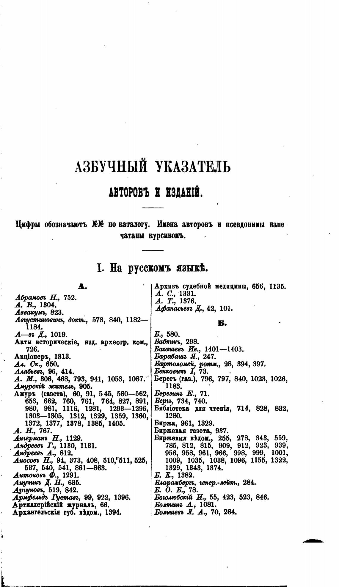 по италогу. Имена авторовъ и псевдонимы напе
