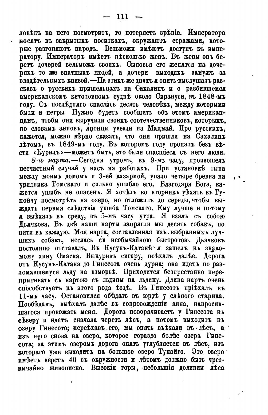 по словамъ аиновъ, японцы увезли на Мацмай. Про русскихъ,