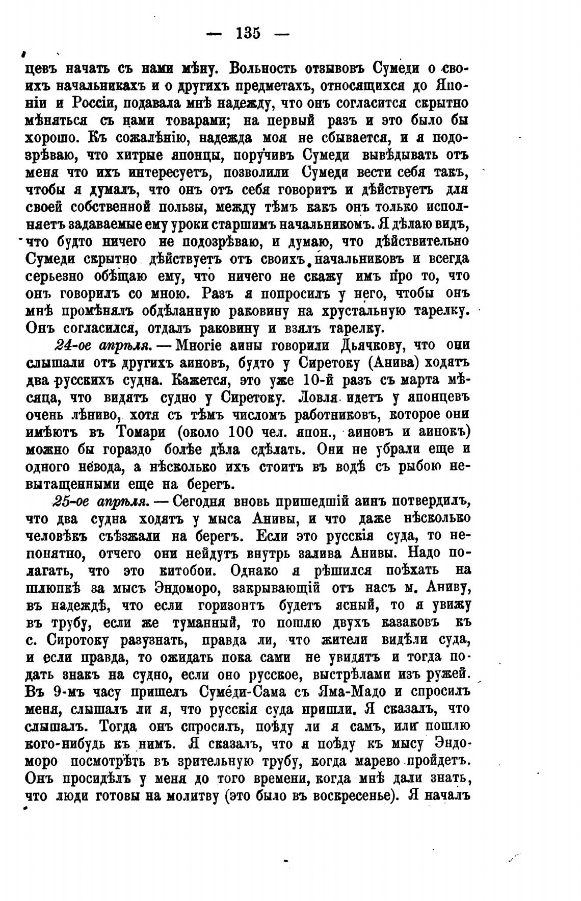 24-ое апрљля. — MH0Tie аины говорили Дьячкову, что они