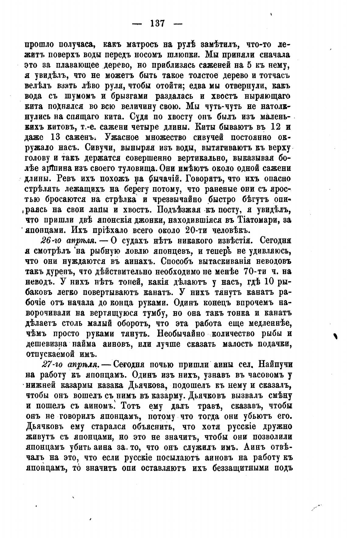 27-го апрљля. — Сетодня ночью пришли аины сел. Найпучи