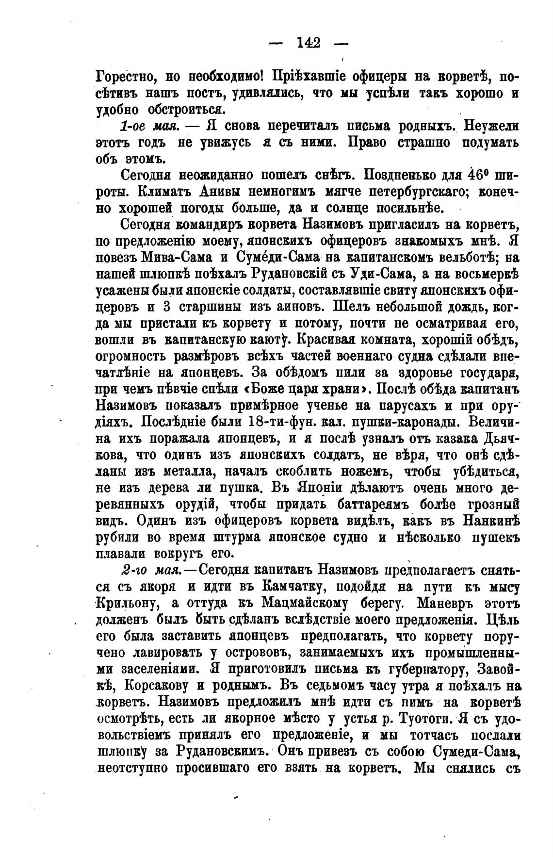 2-0 мая. — Сегодня вапитанъ Назимовъ предполагаетъ спять-