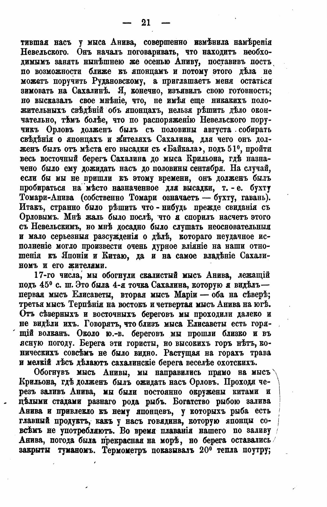 Обогнувъ мысъ Анивы, мы направились прамо на мысъ