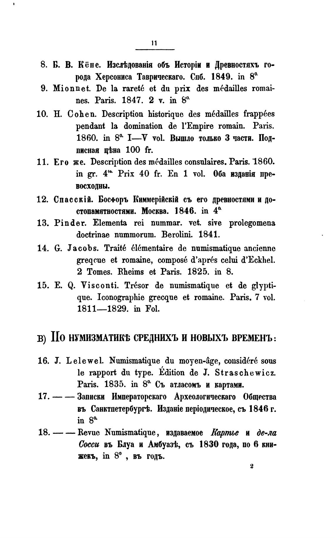 В) IIo НУМИЗМАТИКЈ СРЕДНИХЪ И НОВЫХЪ ВРЕМЕНЪ: