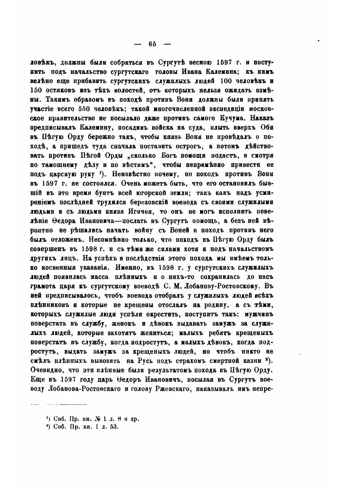 Еще въ 1597 году царь еедоръ Ивановичъ, посылая въ Сургутъ вое-