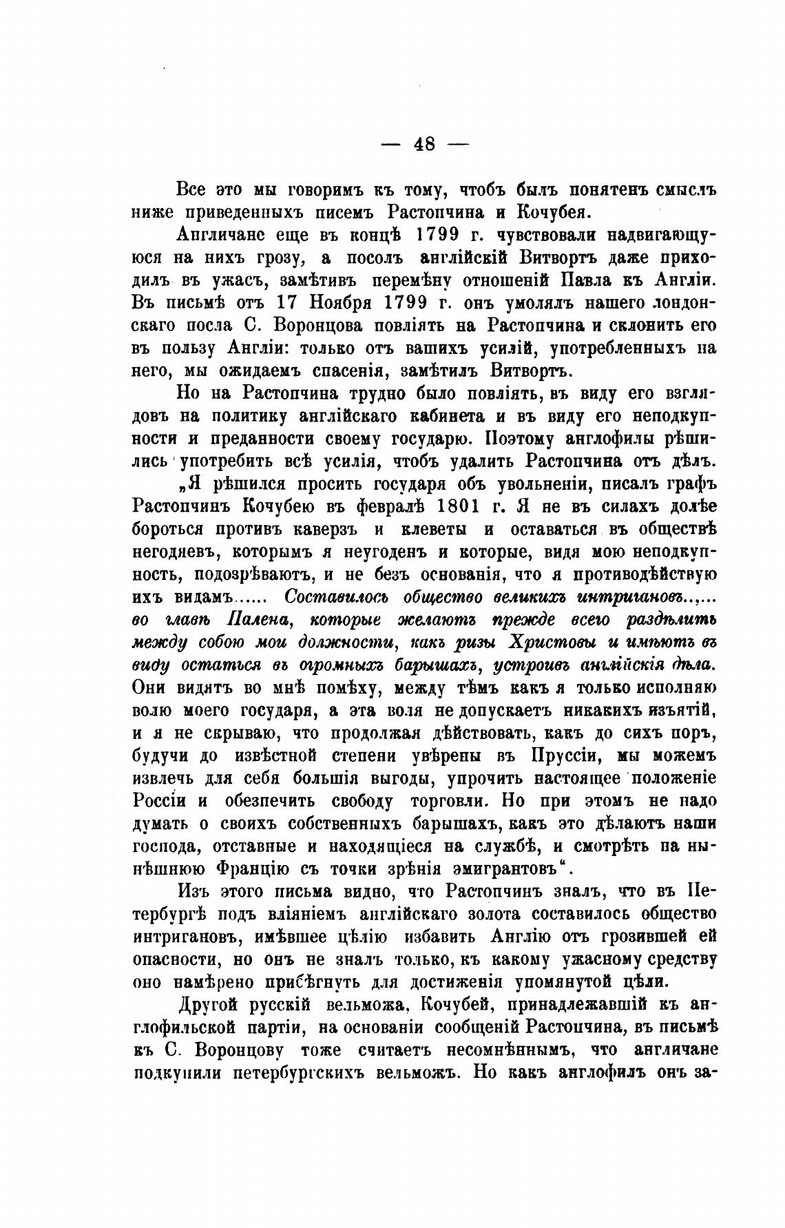 ниже приведенныхъ писемъ Растопчина и Кочубея.