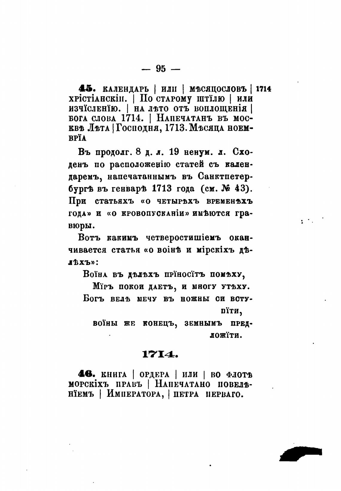 45. КАЛЕНДАРЬ ИЛИ МТСЯЦОСЛОВЪ 1714