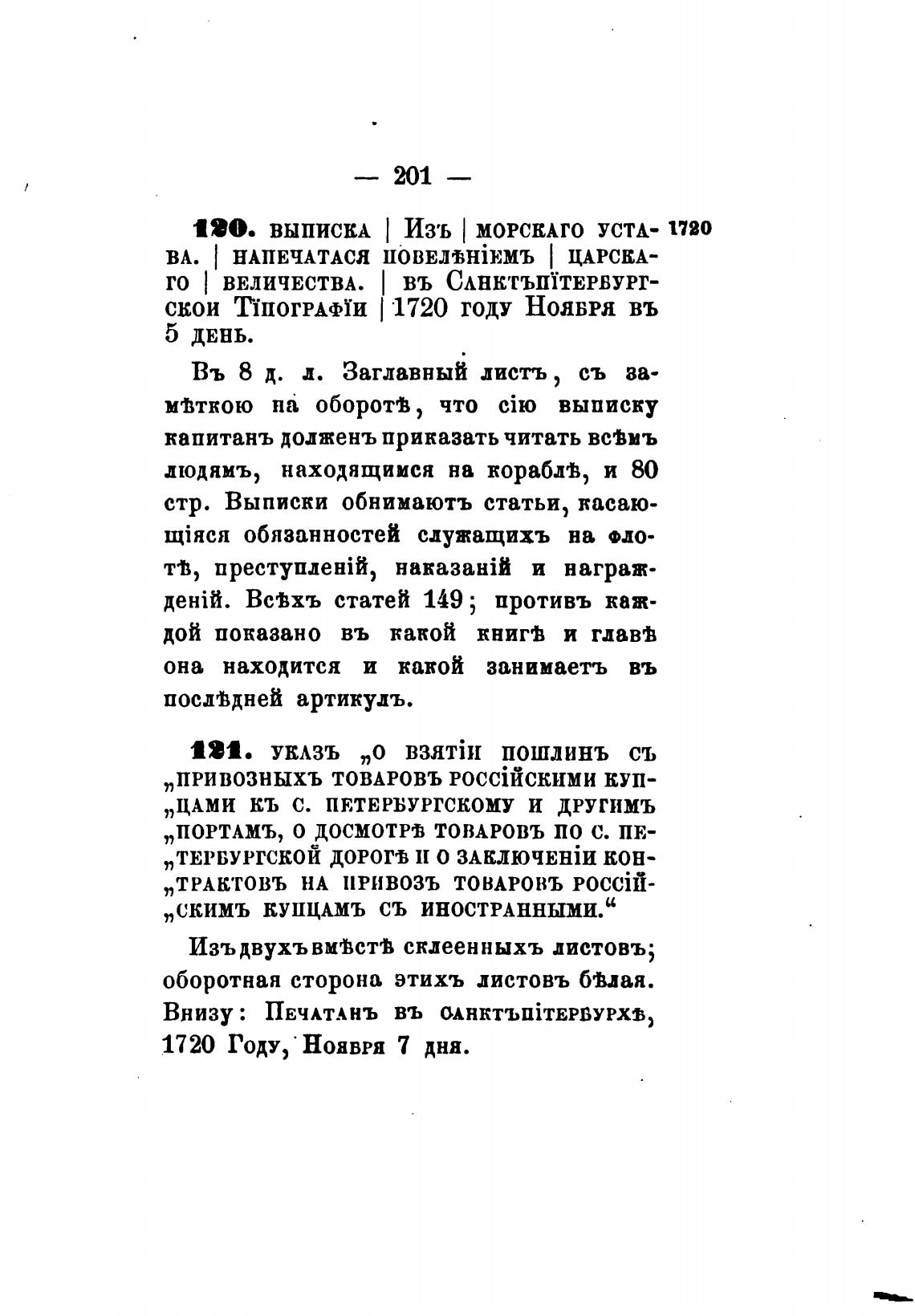 120. ВЫПИСКА Изъ МОРСКАГО УСТА- 1720