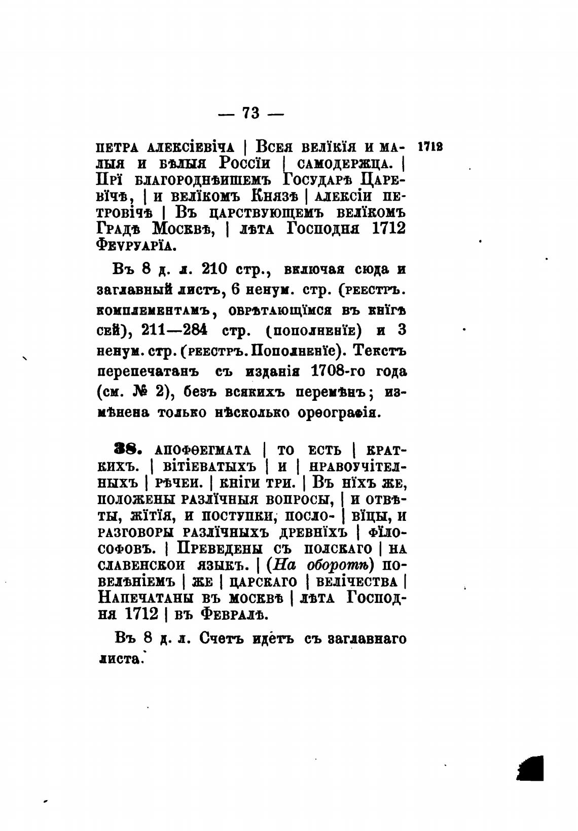 перепечатанъ съ 1708-го года