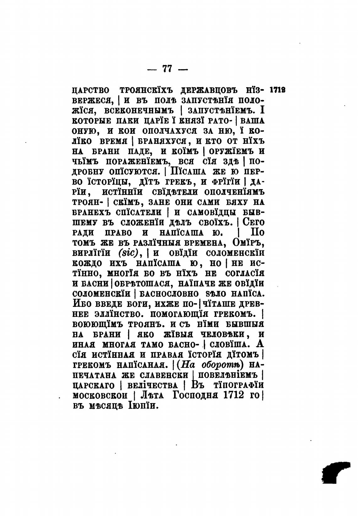 МОСКОВСВОИ ЛИА Господня 1712 го