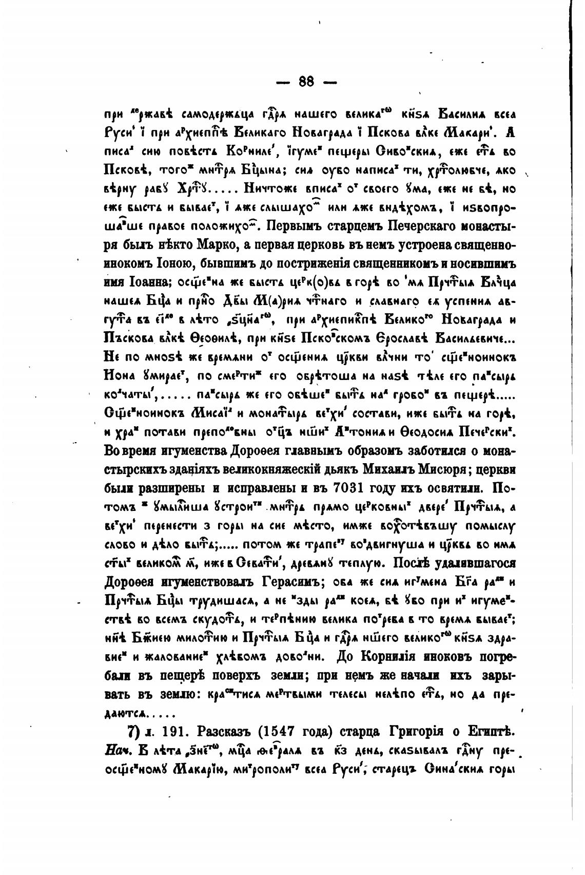 7) л. 191. Разсказъ (1547 года) старца о ЕгиптЬ.